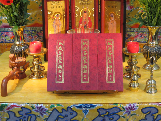 演淨請佛,引魂,開宣經典(地藏菩薩寶懺)(慈悲十王寶懺,彌陀經)二者選一,共三卷,上卷、中卷、下卷,誦經圓滿,送佛,燒庫錢(金銀財寶)